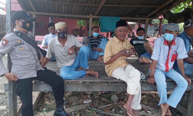 Saat menyambangi aktivitas warga, Aiptu Musyarif mendapati warga yang tidak memakai masker, Ia pun tak segan untuk memberikan teguran agar warga memakai masker saat beraktivitas di luar rumah