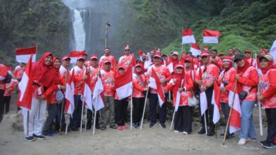 Bupati Asahan Bersama Forkopimda Kibarkan Bendera Merah Putih di Air Terjun Ponot