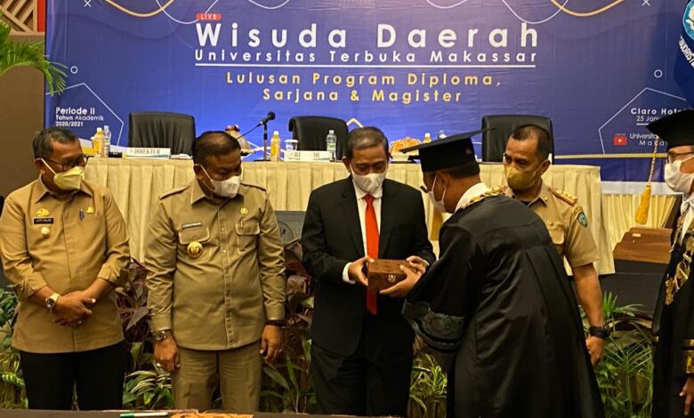 Staf Ahli Bidang Kesejahteraan Rakyat (Kesra), Jayadi Nas, mewakili Pelaksana Tugas (Plt) Gubernur Sulsel, Andi Sudirman Sulaiman, menyampaikan bahwa apa yang dilaksanakan saat ini–di tengah pandemi COVID-19 yaitu pembelajaran jarak jauh secara daring–sudah dilakukan jauh sebelumnya oleh UT.